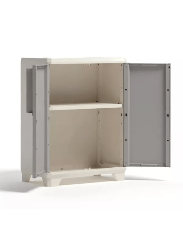 Zemais plastmasas skapis ar 1 plauktu - melns/pelēks